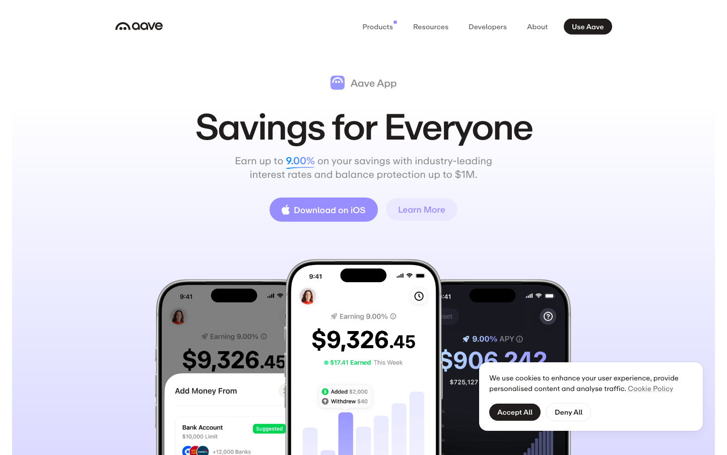 Aave's brand exudes sophisticated fintech confidence through ethereal gradients and weightless UI elements that feel like floating in digital space. The custom 'Aave Repro' typeface creates institutional authority while purple-blue gradients suggest innovation and trust in decentralized finance.