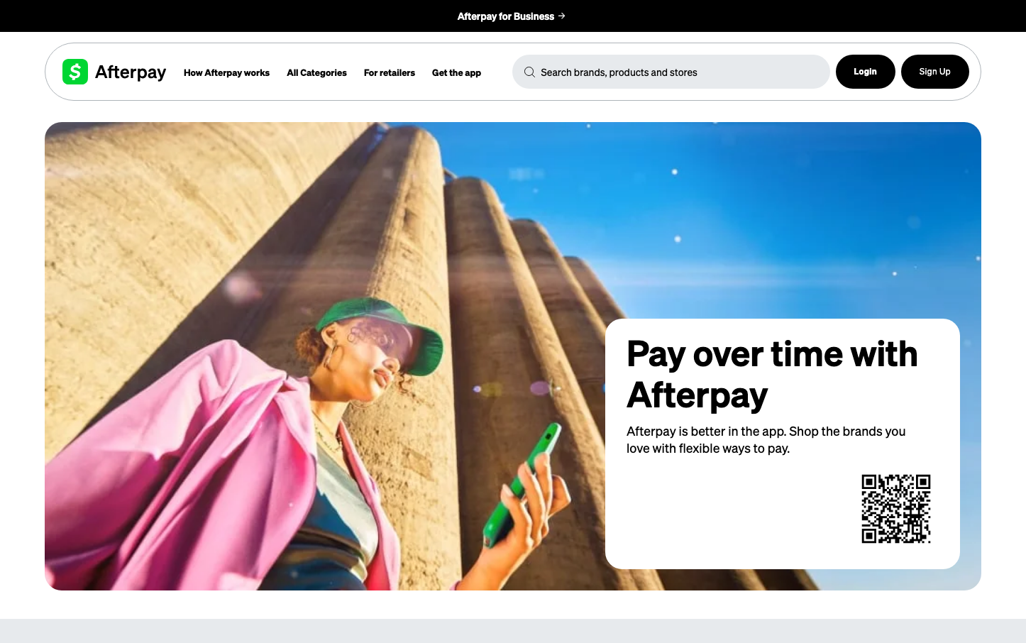 Afterpay's brand radiates financial optimism through its signature mint green and lifestyle-first imagery, positioning payment flexibility as a pathway to personal freedom. The 'Cash Sans' typography reinforces financial credibility while maintaining approachability, creating trust in the fintech space.