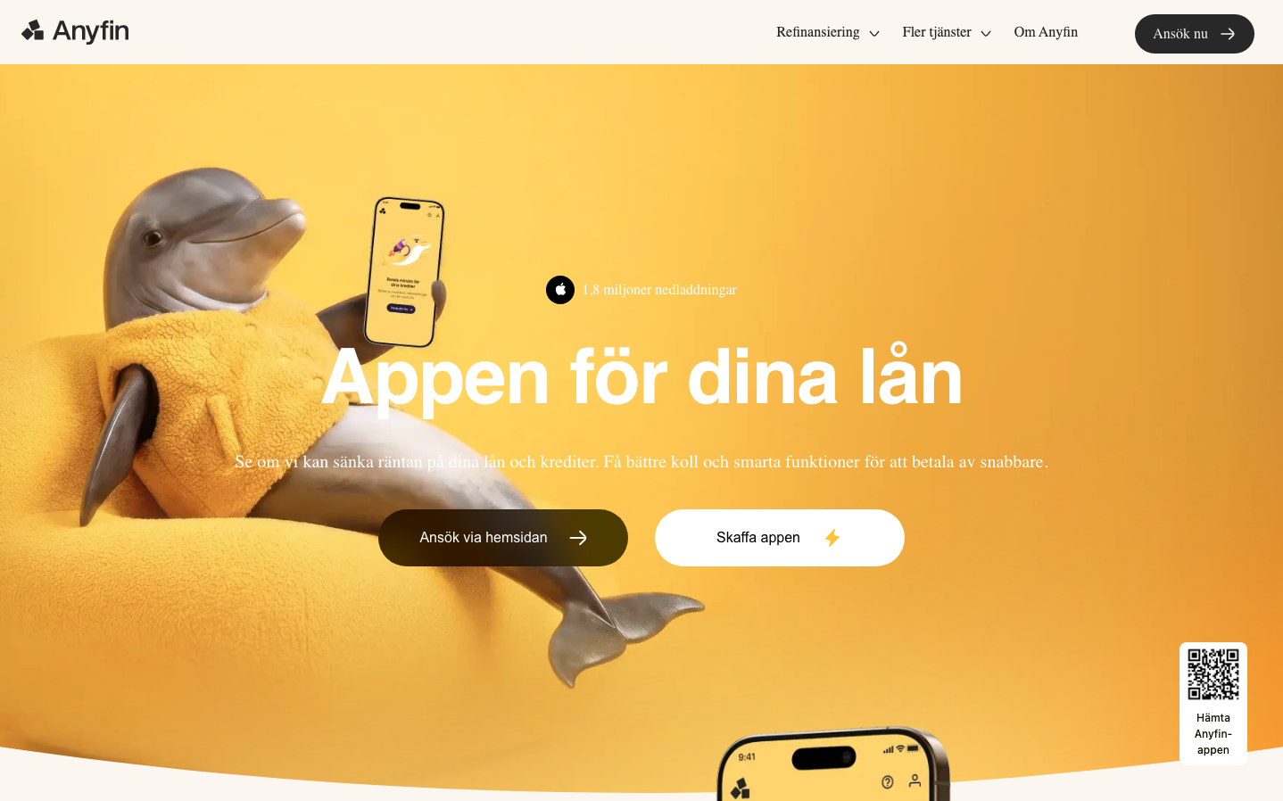 Anyfin embraces a warm, approachable fintech aesthetic anchored by a vibrant sunset orange that feels distinctly Scandinavian - optimistic yet grounded. The Neulis Sans typography creates bold, friendly headlines that pair with their custom Anyfin Sans for a cohesive, trustworthy personality that makes financial services feel human and accessible.