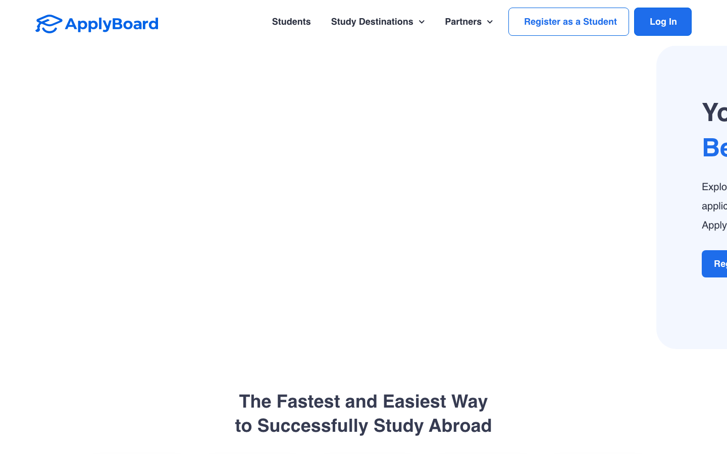 ApplyBoard employs a trustworthy academic aesthetic with crisp blue as the authority color and Montserrat/Open Sans typography that balances institutional credibility with approachable guidance. The design radiates educational professionalism through generous whitespace and clean component hierarchy, targeting students who need reliable guidance for life-changing study abroad decisions.