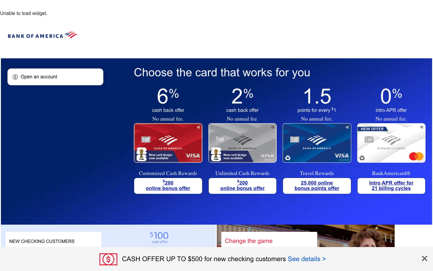 The overwhelming navy background with white text creates a distinctive 'inverse' web experience that feels more like a premium financial presentation than a typical website - most banks use white backgrounds, but BofA owns the dark, authoritative space.