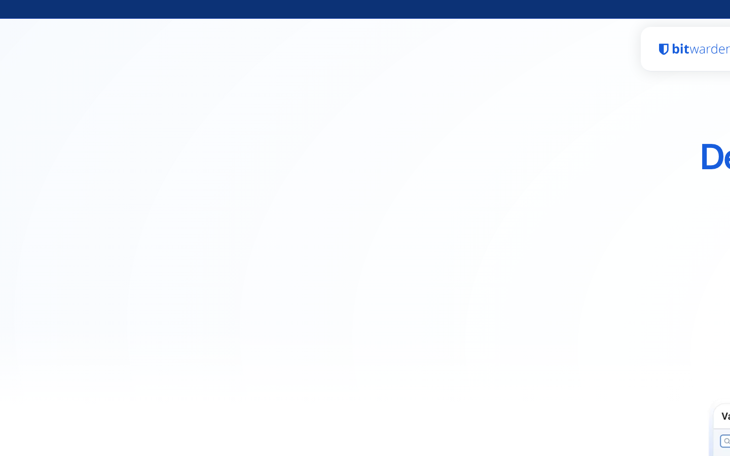 Bitwarden employs a cybersecurity-focused aesthetic built on deep navy blues that communicate fortress-like protection and technical expertise. The typography is deliberately lightweight yet structured, creating a sense of precision without intimidation—perfect for a security tool that needs to feel both powerful and approachable.
