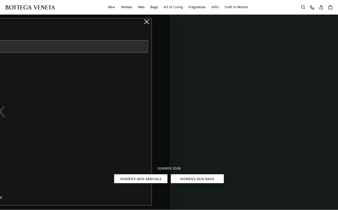 Bottega Veneta's digital presence embodies luxurious minimalism through a monochromatic palette that mirrors their leather craftsmanship philosophy of understated elegance. The custom 'bottegaveneta' typography creates an intimate, whispered luxury that speaks to those who understand quality without ostentation.