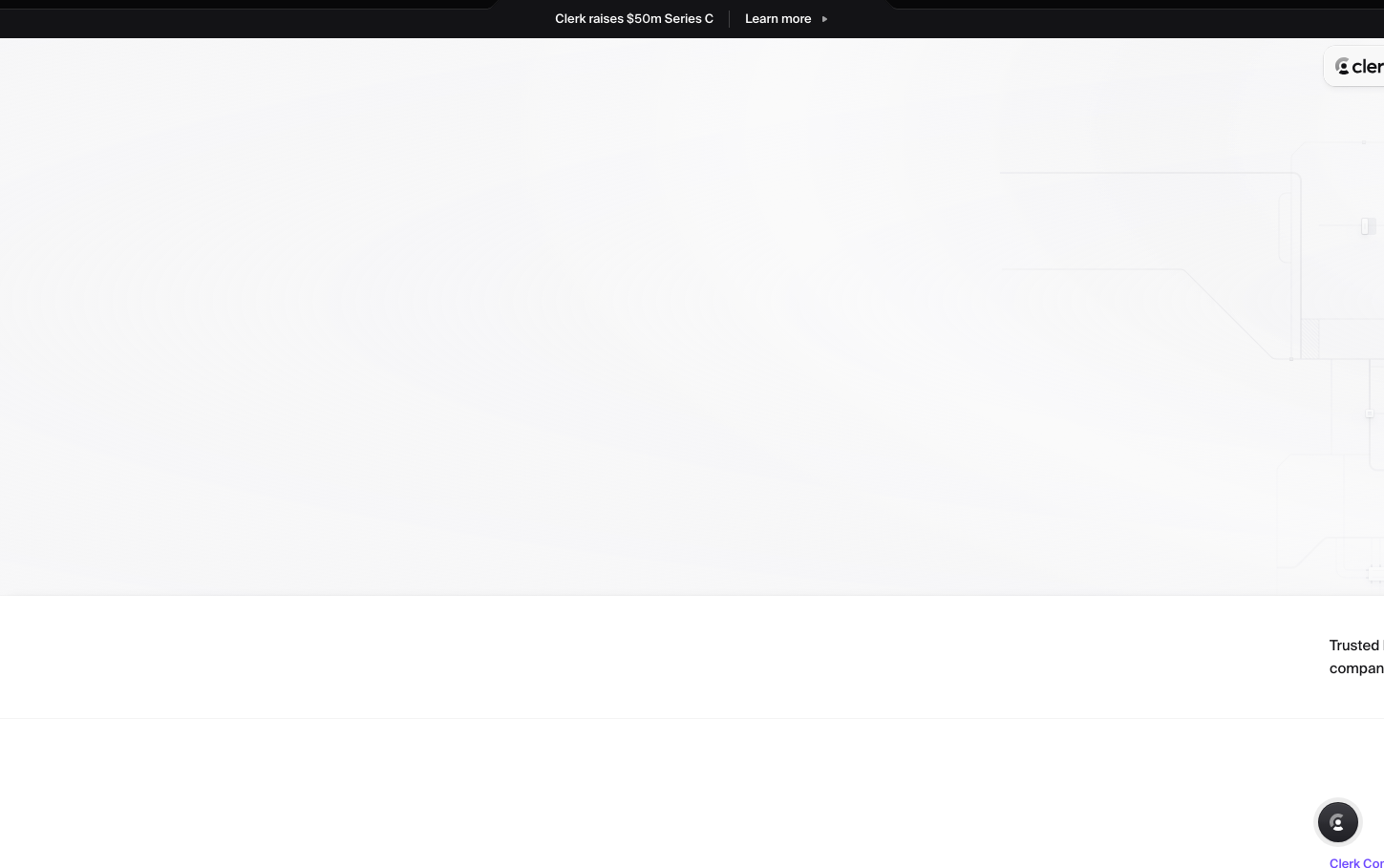 Vast expanses of near-white space punctuated by razor-thin typography - if you see a page that's 90% empty with surgical text placement, it's unmistakably Clerk
