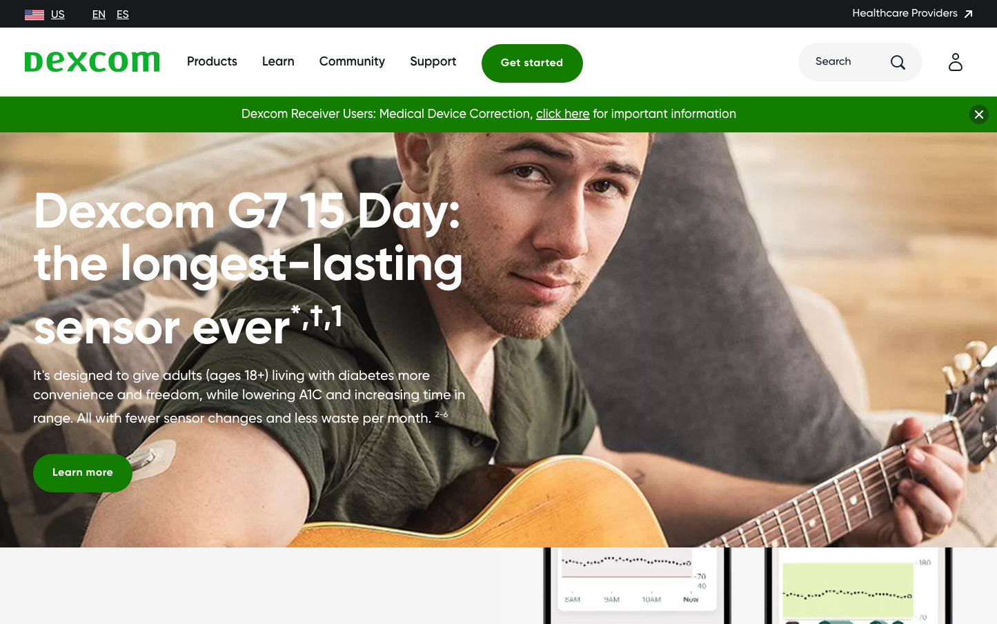 Dexcom embodies healthcare confidence through bold Gilroy typography and authoritative medical green (#137d00), creating a reassuring yet dynamic aesthetic. The brand balances human warmth through lifestyle photography with clinical precision in its interface elements, conveying trusted medical expertise without intimidation.