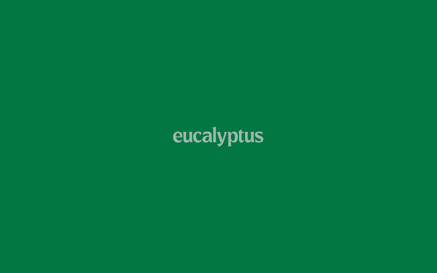 Eucalyptus embodies botanical sophistication through a rich forest green that suggests natural wellness and growth. The minimalist typography treatment creates a zen-like meditation on the brand name, evoking the calming, therapeutic properties of eucalyptus itself.