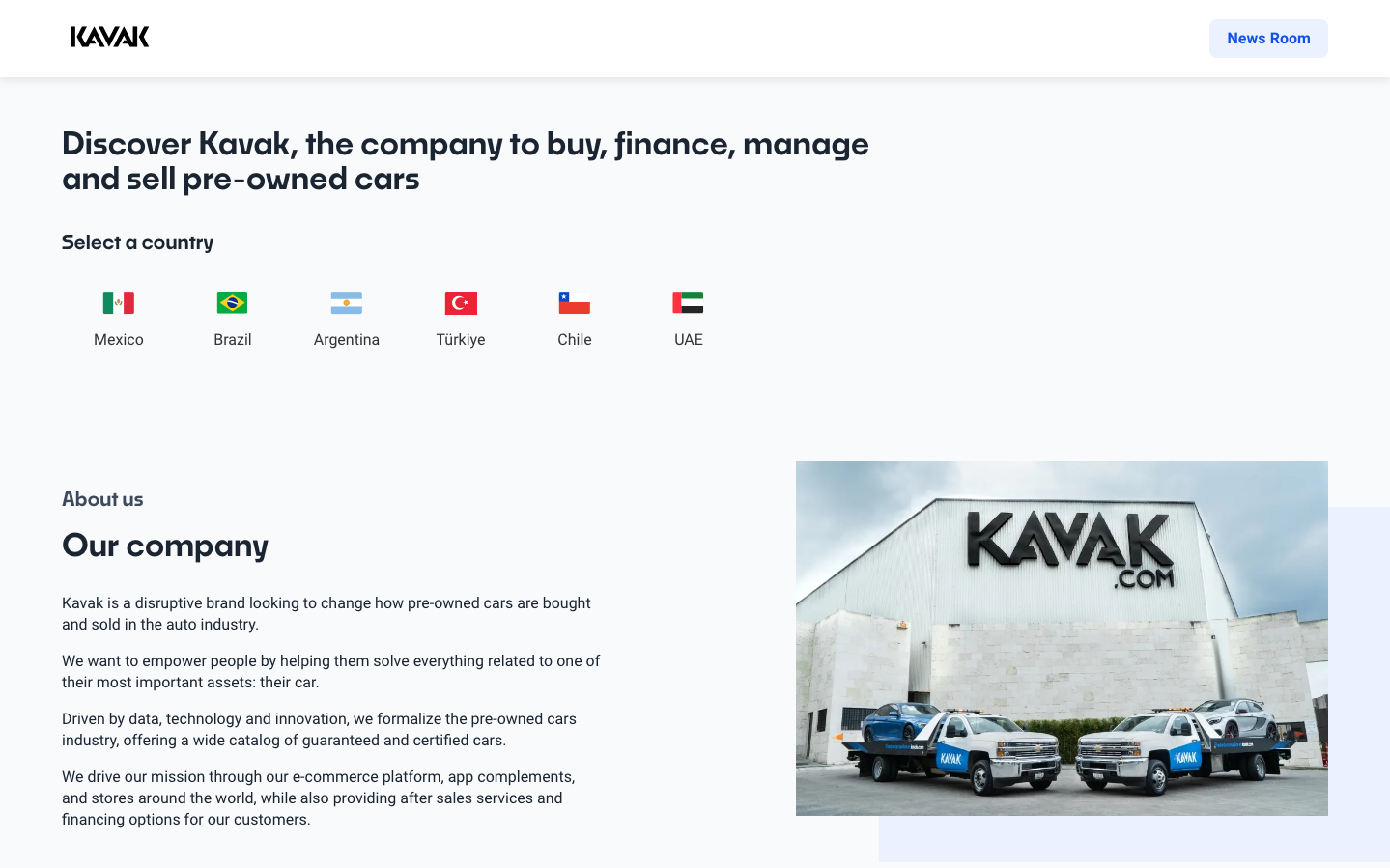 Kavak embodies industrial precision with a bold, no-nonsense aesthetic that speaks to the gritty reality of automotive commerce. The stark black wordmark against neutral backgrounds creates an atmosphere of professional efficiency, while the custom 'nokaSemiBold' typography commands authority in the used car marketplace.