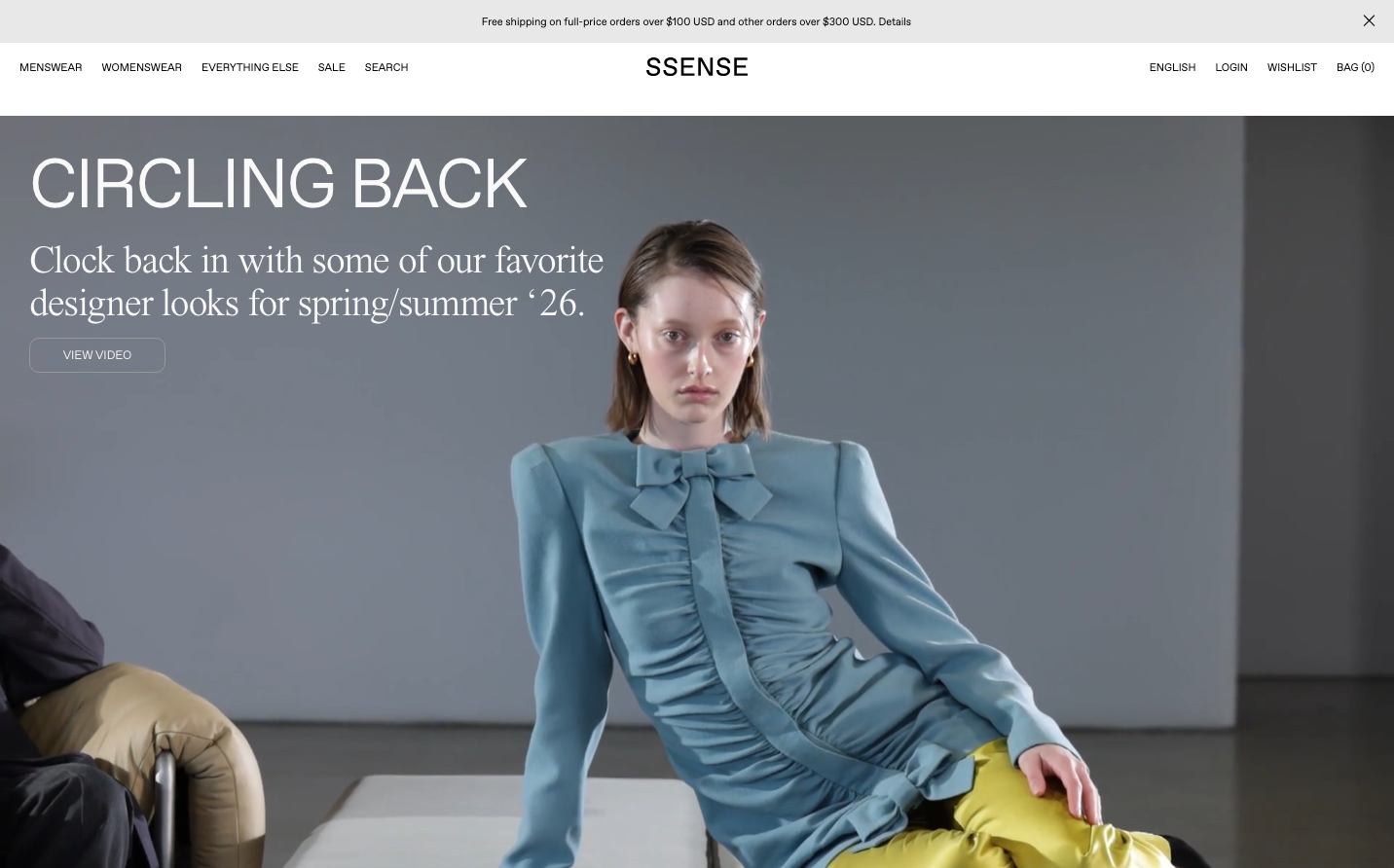 Ssense embodies high-fashion minimalism through stark monochromatic compositions and editorial typography hierarchy. The brand uses museum-like whitespace and fashion photography to create an atmosphere of avant-garde luxury that feels more like a contemporary art gallery than a traditional e-commerce site.