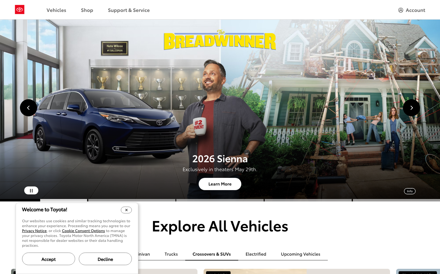 Toyota's digital identity embodies approachable automotive authority through clean, trust-building white spaces and confident red accents that communicate reliability without intimidation. The typography hierarchy uses multiple Helvetica variants to create subtle sophistication while maintaining mass-market accessibility.