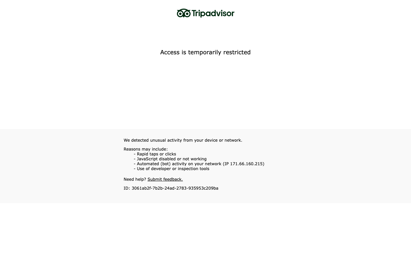 Tripadvisor employs a stark, utilitarian aesthetic that prioritizes function over form with clinical precision. The monochromatic palette and Times serif typography create an unexpectedly serious, almost governmental tone that contrasts sharply with typical travel brand exuberance.
