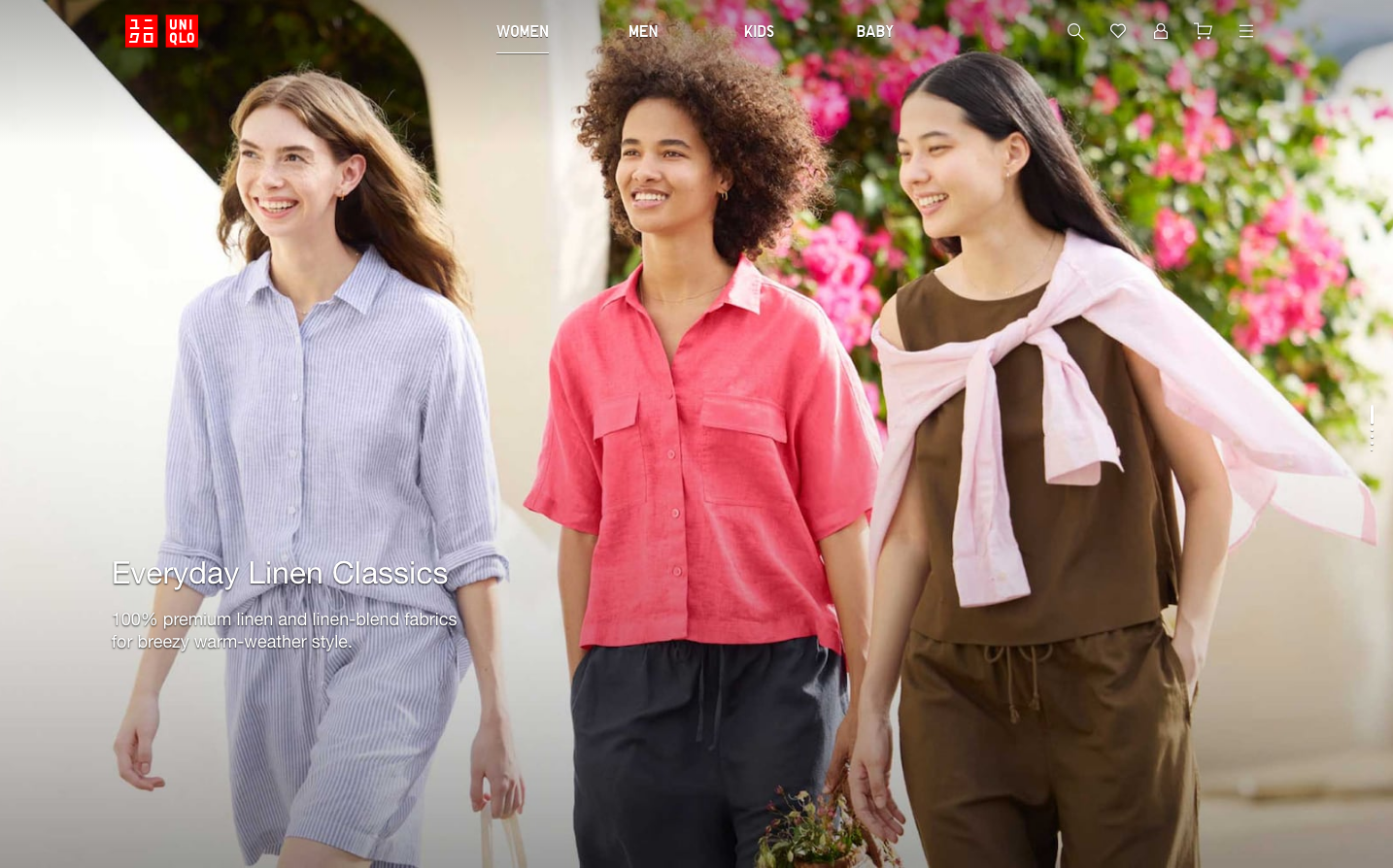 Uniqlo embodies accessible minimalism through its signature red logo against pristine white backgrounds, creating an atmosphere of democratic luxury. The brand uses subtle grayscale foundations punctuated by strategic color moments, telling a story of effortless simplicity that makes quality fashion approachable to everyone.