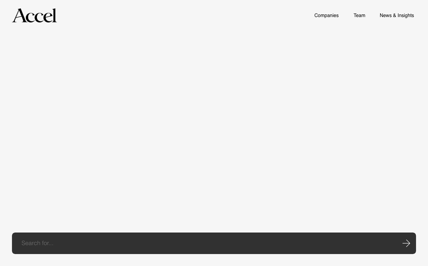The dramatic use of negative space as the primary design element - most brands fill space, Accel celebrates emptiness to convey institutional gravitas and patient capital philosophy.