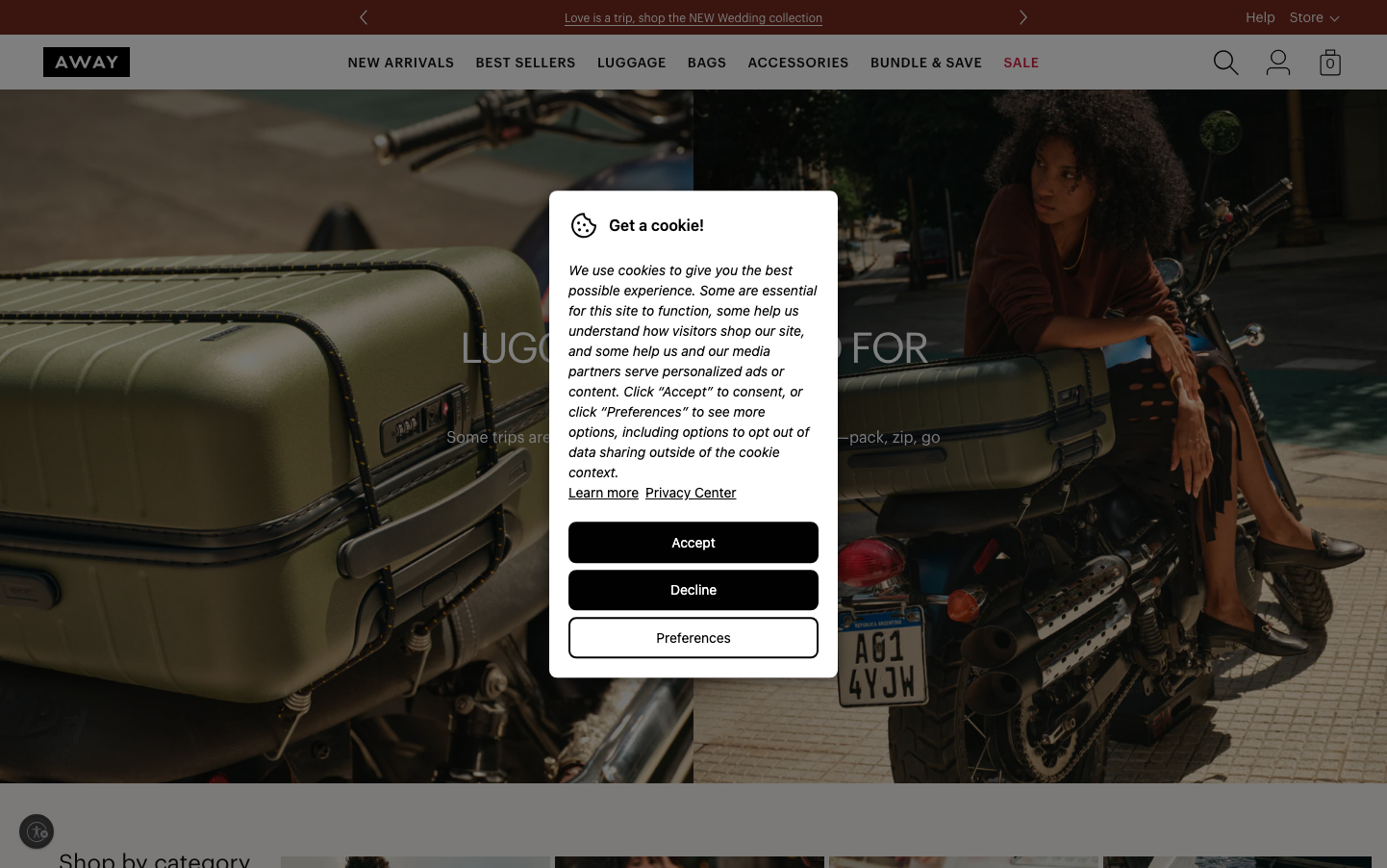 Away embodies a premium travel aesthetic through stark geometric contrasts and monochromatic sophistication. The midnight navy (#012169) commands authority against crisp whites and warm off-whites, while razor-sharp zero-radius corners create an architectural precision that speaks to thoughtful engineering.