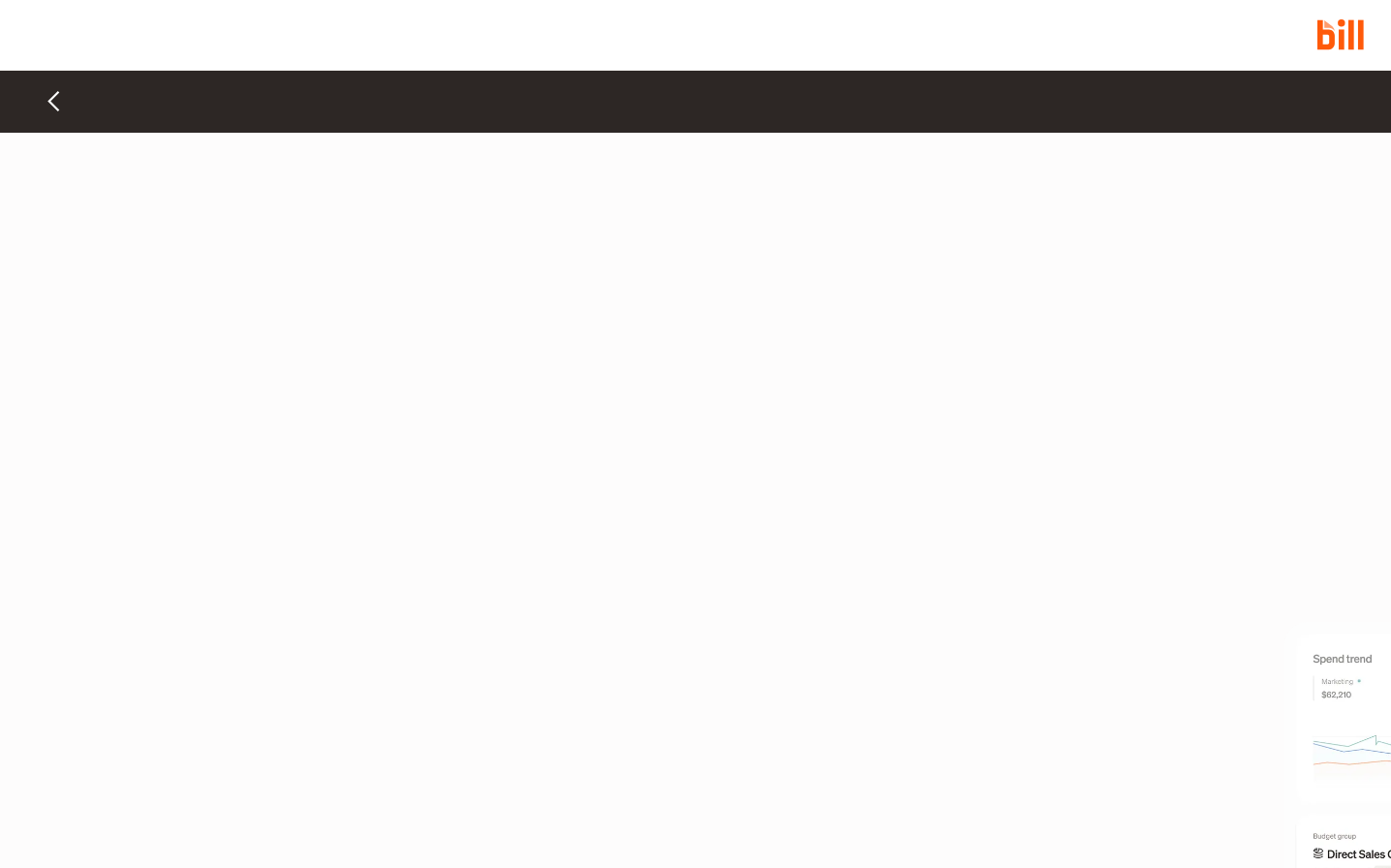 Bill embraces radical minimalism with an almost meditative use of negative space, punctuated by their signature vibrant orange that cuts through the pristine off-white canvas like a precise editorial mark. The custom Sohne typography creates a sophisticated financial authority through its balanced weight hierarchy and generous line spacing.