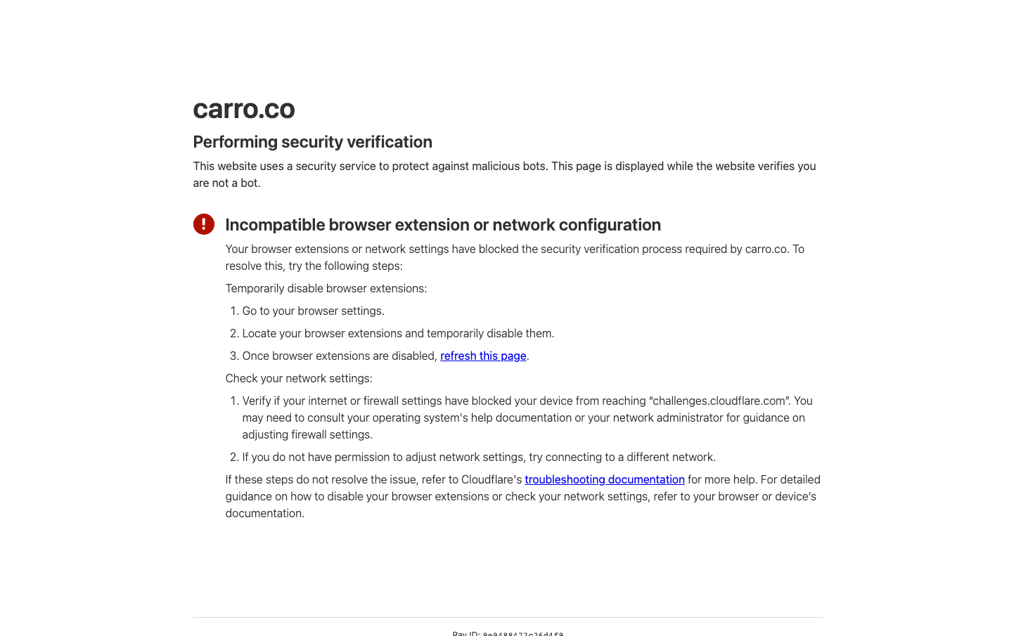 Carro embodies utilitarian security aesthetics with stark monochrome typography and minimal visual elements. The design feels clinical and defensive, prioritizing functional communication over visual appeal with system fonts that suggest technical reliability.