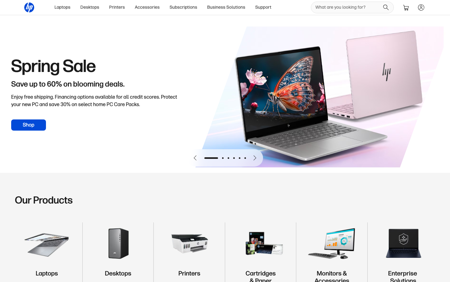 HP's signature aesthetic blends enterprise professionalism with consumer accessibility through a distinctive electric blue palette and clean, geometric layouts. The forma-djr-micro typeface creates a contemporary tech feel while maintaining corporate reliability, with generous whitespace and subtle gradients that feel premium yet approachable.