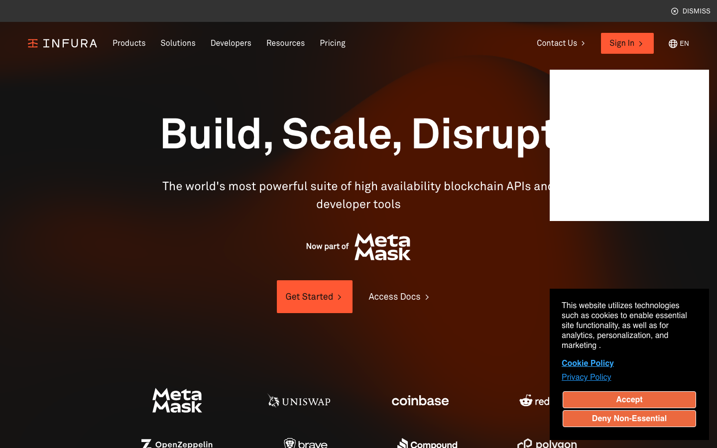 Infura presents a dramatic nocturnal aesthetic that feels like premium developer tooling meets Web3 ambition. The signature orange (#eb693f) cuts through deep shadows like digital fire, while the custom Akkurat typography maintains Swiss precision against gradient darkness that suggests infinite blockchain possibilities.