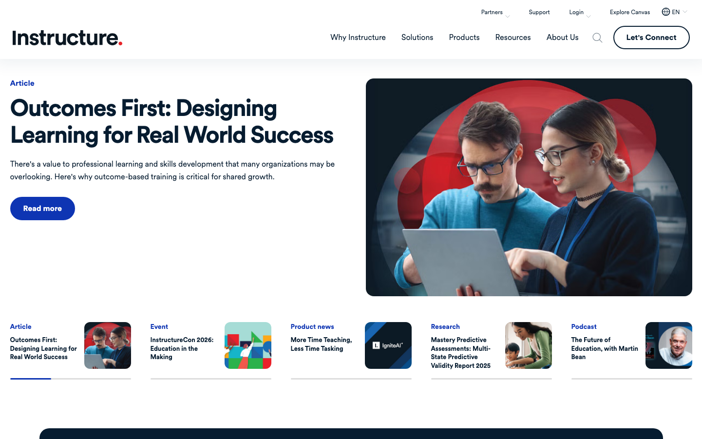 Instructure embodies an education-first aesthetic that balances professional authority with approachable warmth. The vibrant royal blue creates trust and reliability while the geometric red accent adds energy and innovation, telling a story of transformative learning experiences.