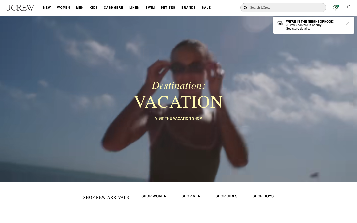 J.Crew embodies aspirational American sophistication with its clean serif-inspired navigation and dramatic full-screen lifestyle imagery. The brand balances understated luxury through generous whitespace and refined typography, creating an atmosphere of effortless elegance that speaks to coastal prep culture and timeless style.