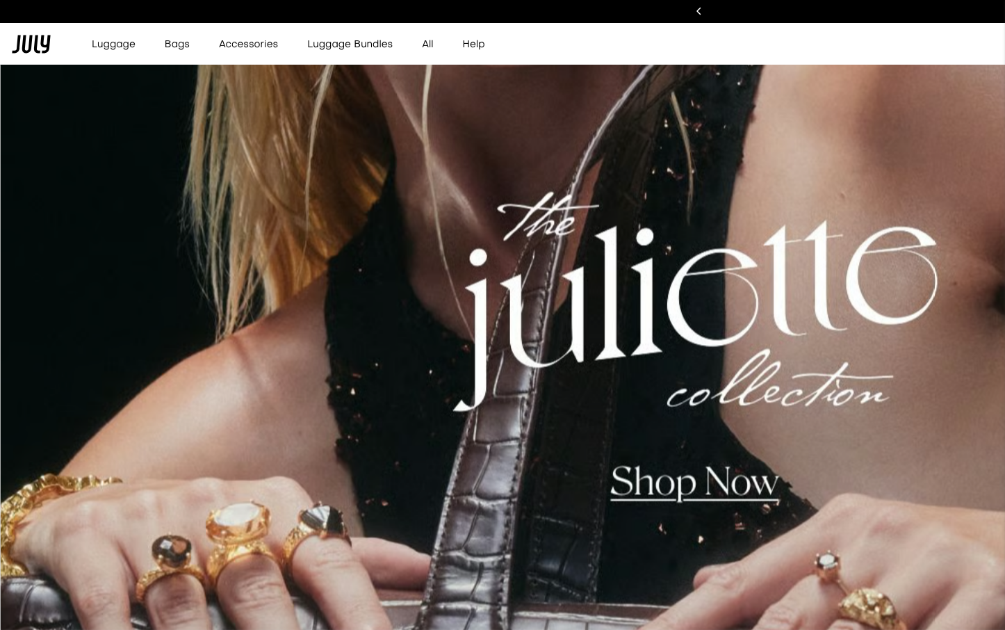 July creates a luxurious, editorial aesthetic that feels like a high-end fashion magazine come to life. The warm, champagne-toned palette combined with elegant script typography evokes intimacy and sophistication, while the generous whitespace and minimal layout creates an atmosphere of exclusivity and refinement.