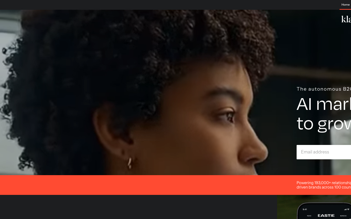 Klaviyo's identity radiates warm sophistication through cinematic photography and elegant typography. The custom Klaviyo Degular typeface creates literary gravitas while maintaining approachability, supported by a palette of warm creams and strategic orange accents that suggest growth and creativity.