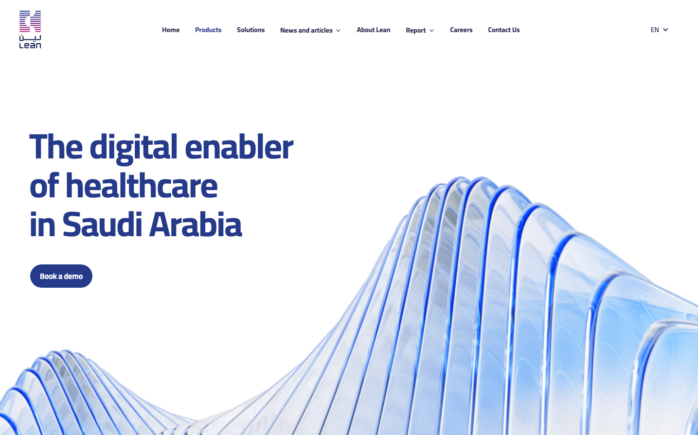 Lean Technologies presents a sophisticated financial technology aesthetic built around flowing, translucent blue ribbons that create depth and movement. The brand combines bold, impactful Cairo typography with clean Arial sans-serif for a balance of Middle Eastern character and global fintech credibility.