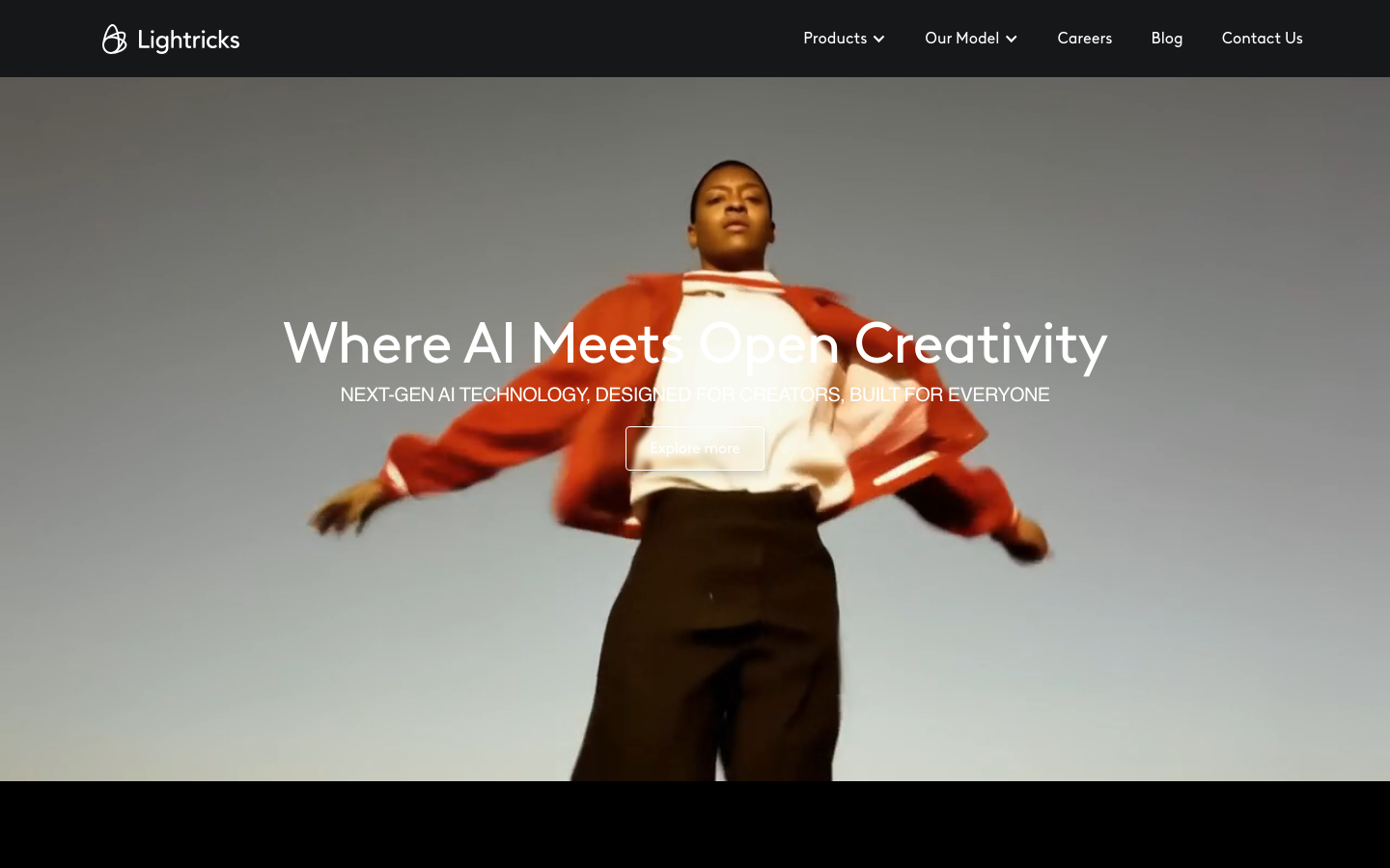 Lightricks projects cinematic confidence through dramatic photography and bold typography contrasts. The dual-font system - clean Brownllweb for interface, distinctive Miriam Libre for headlines - creates sophisticated hierarchy while the warm-toned hero imagery communicates creative empowerment and human-centered AI.