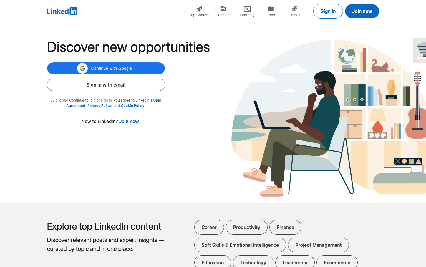 LinkedIn embodies professional accessibility through warm, approachable design that feels inviting rather than corporate. The system font stack ensures universal readability while the signature blue conveys trust and reliability for career-focused networking.