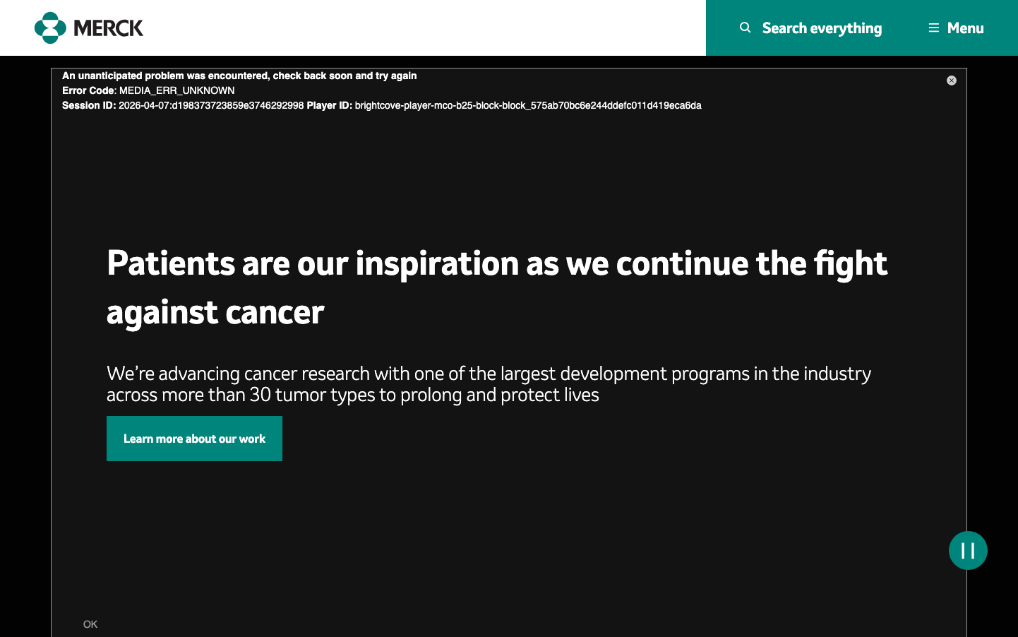 Merck's brand exudes pharmaceutical authority through a sophisticated teal-dominant palette that balances medical trust with innovation. The Invention typeface creates a distinctive scientific-yet-approachable voice, while the stark black hero sections with white text establish gravitas befitting a century-old healthcare giant.