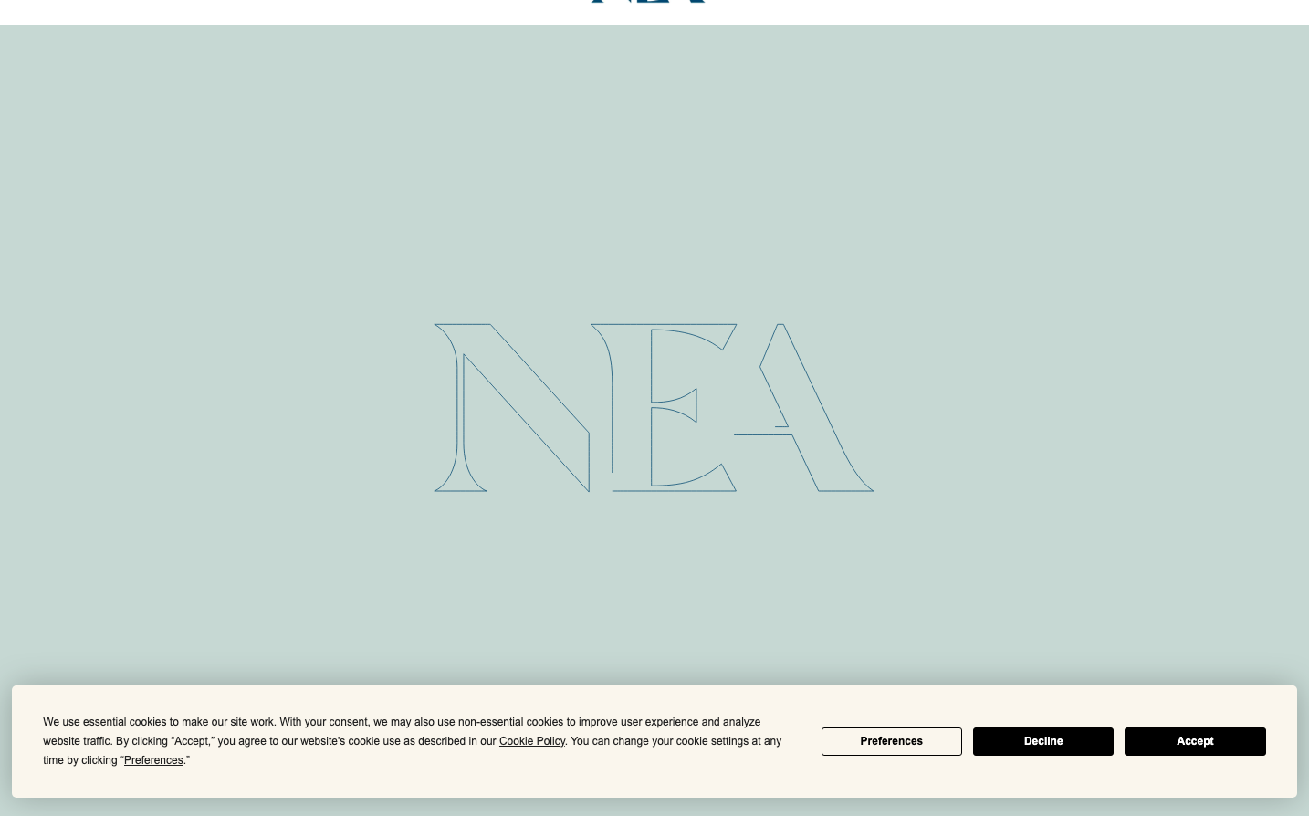 NEA embodies institutional gravitas through ultra-light serif typography that whispers authority rather than shouting it. The ethereal sage green backdrop creates a contemplative, premium atmosphere that suggests deep thought and measured decisions - perfect for a venture capital firm that values intellectual rigor over flashy promises.