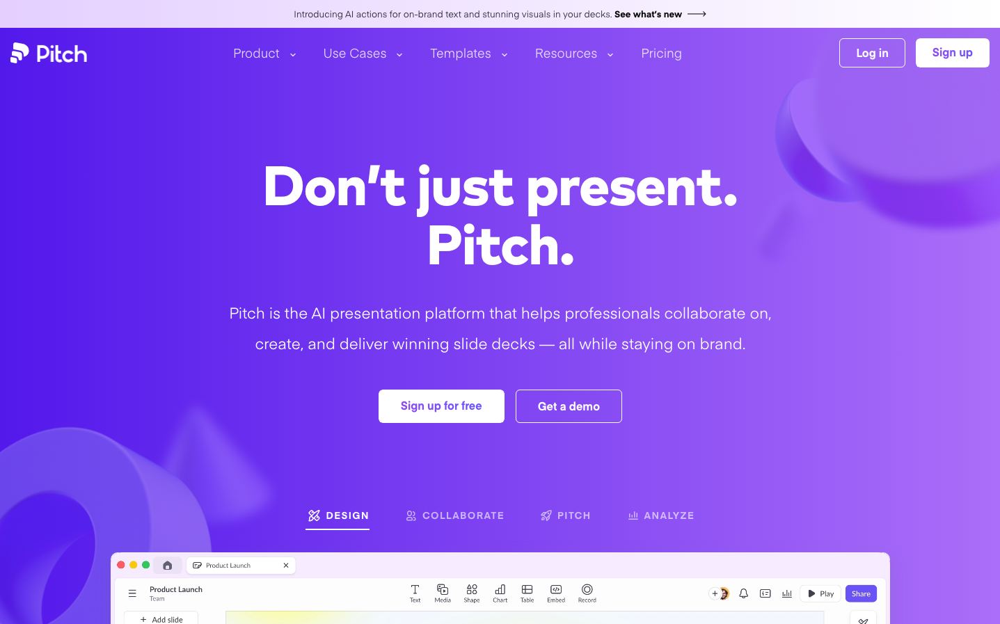Pitch embodies presentation excellence through an immersive purple gradient cosmos that suggests infinite creative possibility. The bold Mark Pro headlines paired with the refined Eina01 body text create a professional-yet-approachable duality that speaks to ambitious teams who want powerful tools without sacrificing visual sophistication.