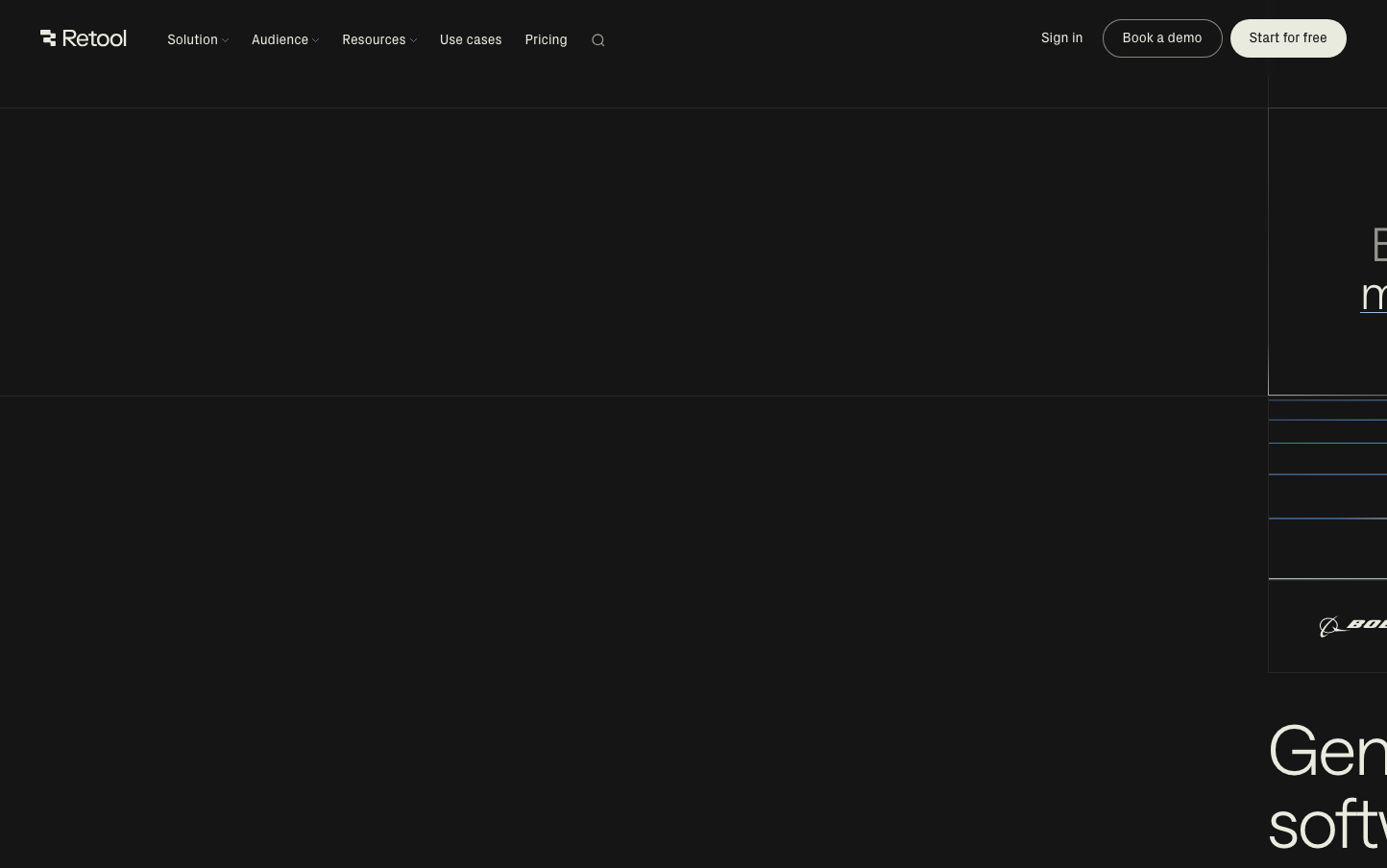 Retool embodies a developer-first aesthetic with stark minimalism and surgical precision. The ultralight typography (300 weight) creates an almost ethereal quality against the dark void, while the distinctive sage-green accent color signals sophisticated tooling for technical professionals.