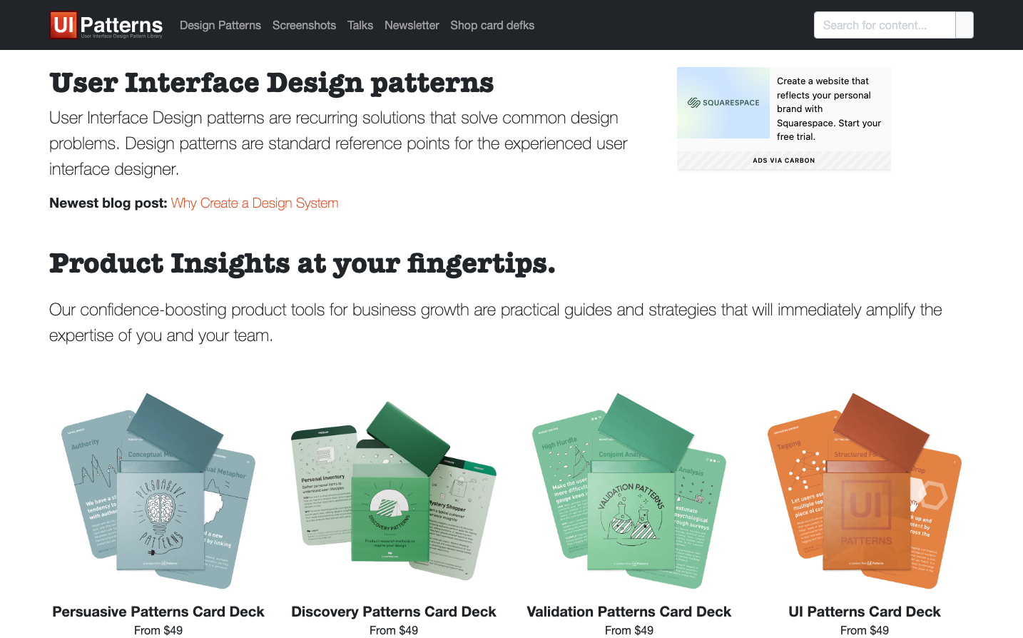 UI Patterns embraces academic authority through bold Roboto Slab headlines that command attention like textbook chapter headers, while Lato body text maintains approachable readability. The brand's aesthetic feels like a design professor's curated collection - serious about craft but not intimidating, with generous whitespace creating a gallery-like presentation of knowledge.
