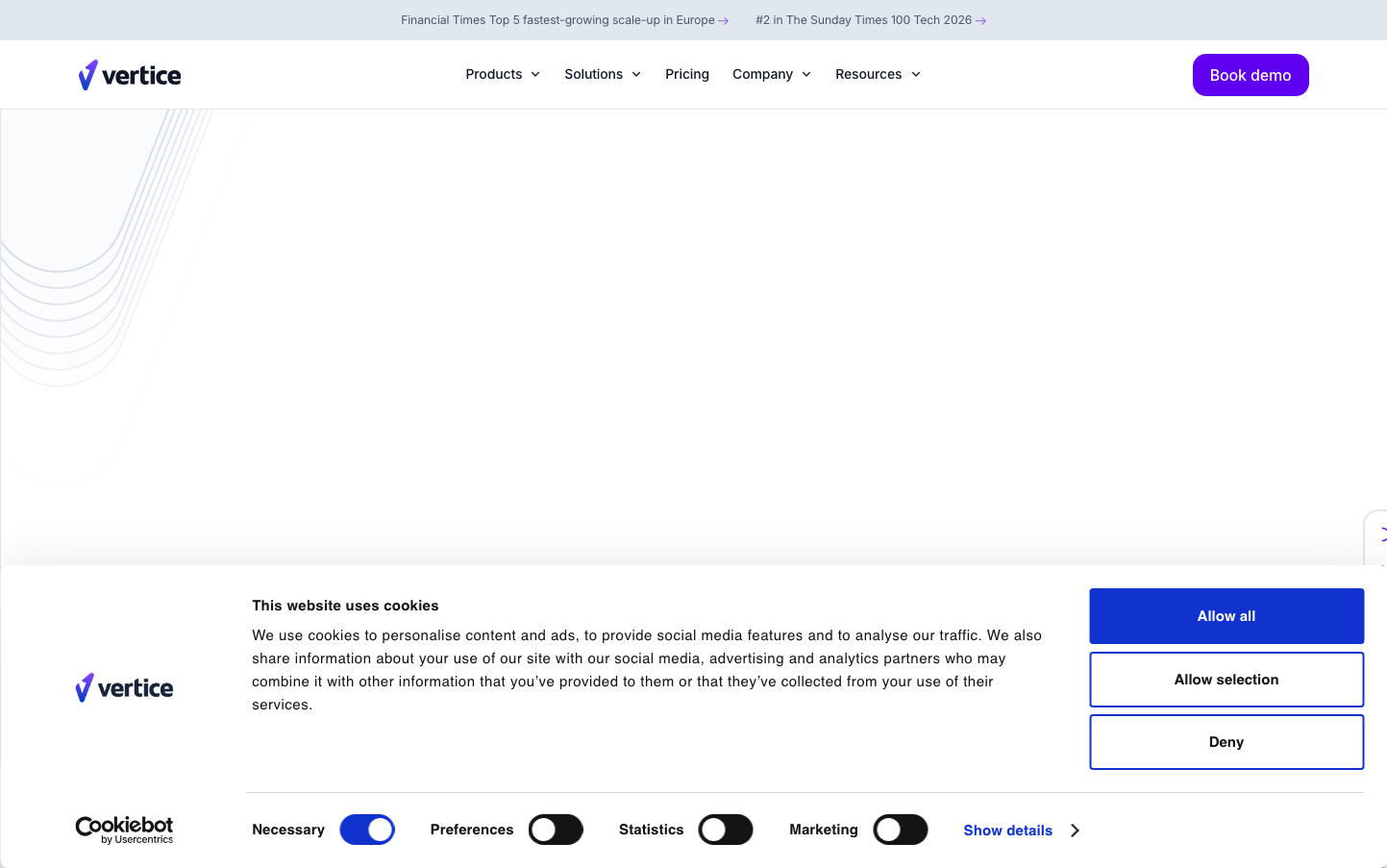 Vertice employs a sophisticated enterprise aesthetic built on an arctic blue-gray foundation that evokes trust and technical precision. The typography system uses Inter New with dramatic scale jumps (68px headlines to 15px body) creating a confident, authoritative voice for serious B2B decision-makers.