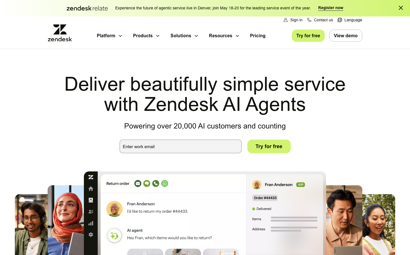 Zendesk projects approachable enterprise sophistication through its signature lime-green energy balanced with clean, spacious layouts. The custom 'Vanilla Sans' typography creates a friendly yet professional voice that feels both human and scalable, perfectly embodying their customer service automation mission.